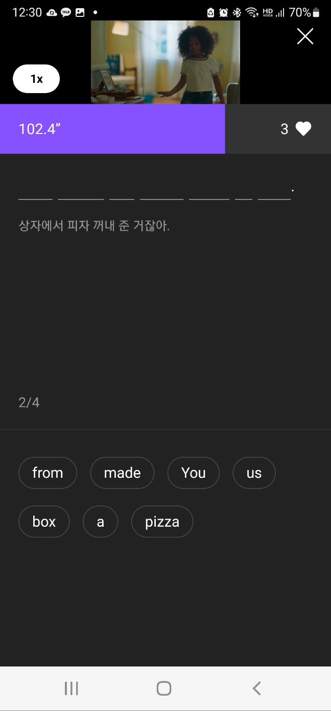 주어진 단어를 주어주고 하나씩 눌러 문장을 완성하는 코너 입니다.