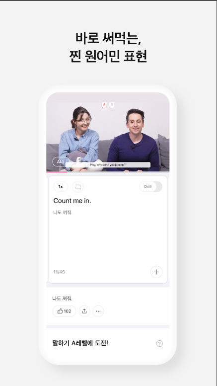 무엇보다 우리가 항상 휴대하고 다니는 스마트폰으로 간이 시간에, 짜투리 시간에 조금씩 해볼 수 있는 분량으로 되어있기 때문에 영어회화가 간절한 분들은 한 번 설치하고 활용해 보셔도 좋을 것 같습니다.